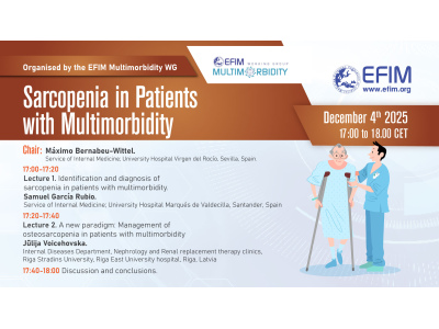 The EFIM Multimorbidity Working Group is pleased to invite you to our upcoming webinar, “Sarcopenia in Patients with Multimorbidity,” taking place on Thursday, 4 December 2025, from 17:00 to 18:00 CET.
